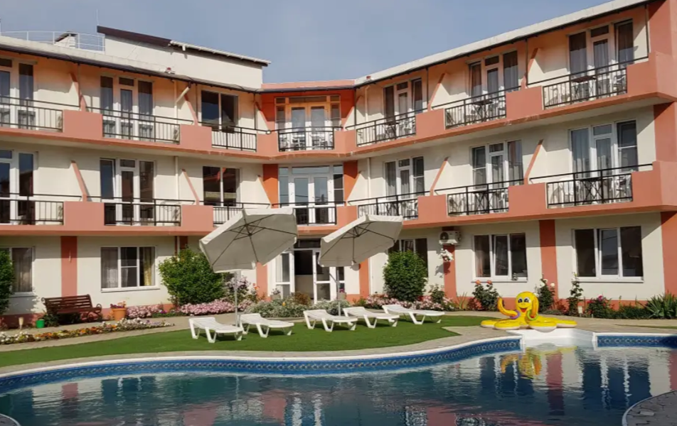 В кождом корпусе гостевого дома имеется кухня для самостоятельного приготовления пищи, так же можно воспользоваться стиральной машиной, гладильной доской с утюгом. Благоустроенной территории располагается бассейн с подогревом и зоной отдыха, мангальная зона, беседки. Так же имеется уютная кухня-столовая, которая полностью оборудована для самостоятельного приготовления пищи. А для самых маленьких гостей оборудована игровая площадка, где есть домик, песочница с игрушками и горка для веселого время препровождения на свежем воздухе. Один раз в неделю для детей проводится веселая анимация.