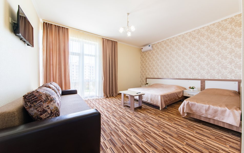 В гостевом доме представлены номера разных категорий. Комнаты укомплектованы одно- или двуспальными кроватями, всей необходимой для комфортного отдыха мебелью и техникой, собственными санузлами. Некоторые варианты дополнены балконом, компактной кухней, второй спальней.