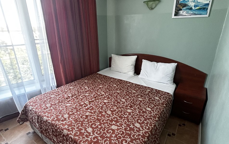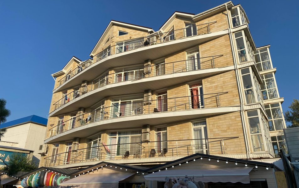 Пятиэтажный корпус отеля возвышается на первой береговой линии в 30 метрах от морского побережья. В распоряжении отдыхающих двух и трехместные номера с балконами. В каждом номере есть автономный санузел, небольшой холодильник, ЖК-телевизор и сплит-система.