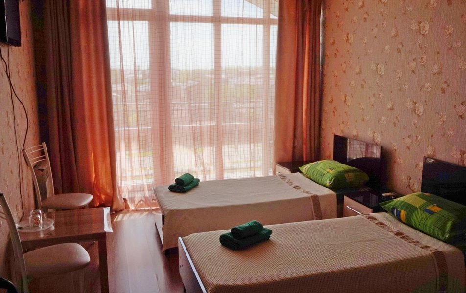 Трехэтажное здание гостевого дома разместилось на первой береговой линии всего в 50 метрах от побережья. В распоряжении гостей однокомнатные и двухкомнатные номера с удобствами. Везде есть индивидуальный душ, санузел, установлена сплит-система, имеется бытовая техника – электрочайник, телевизор, фен, холодильник. Из окон некоторых комнат открывается вид на морской горизонт.