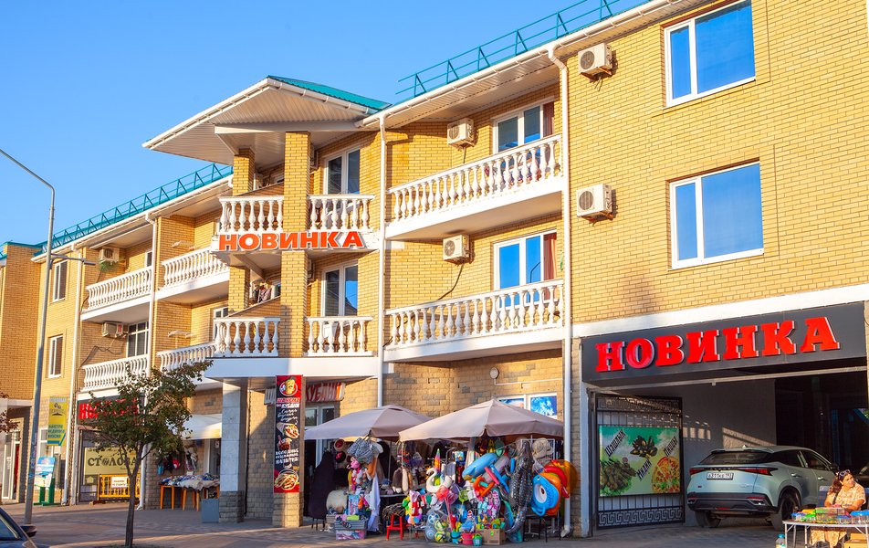 Для встречи гостей в гостиничном комплексе «Новинка» всё сделано с такой душой, что к этому нельзя остаться равнодушным. Уже само расположение гостиничного комплекса настраивает на отпускной оптимизм: лучший уголок Ейска – начало Ейской косы. Это курортная зона с основными базами отдыха, пансионатами, отелями и развлекательными заведениями. «Новинка» выделяется среди всех ярким дизайном и эргономикой территории. Гости оценят 10-метровую близость моря – даже улица называется Пляжной. По соседству и парк аттракционов – всего 50 метров. При этом комплекс находится всего в трех километрах от вокзала и центра с городским парком.