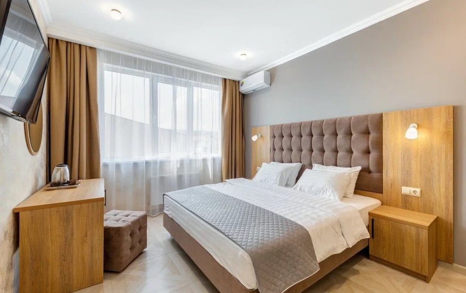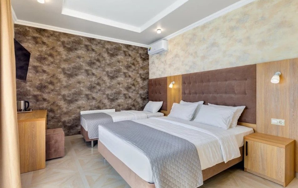 Четырехэтажный корпус отеля с закрытым внутренним двориком расположен на зеленой тихой улице. Внутри - стильные современные интерьеры, выдержанные в приятных спокойных оттенках. Гостей ожидают просторные номера с удобствами. В каждом установлен кондиционер и имеется необходима техника: телевизор, мини-холодильник. Интернет Wi-Fi на территории поможет всегда оставаться на связи. Для путешественников на машине организована парковка возле корпуса (при наличии мест).