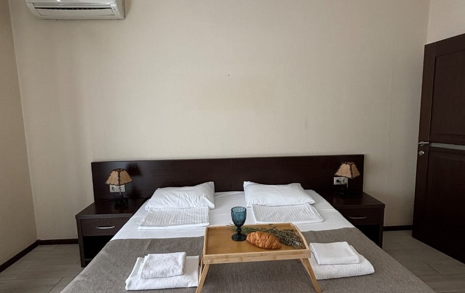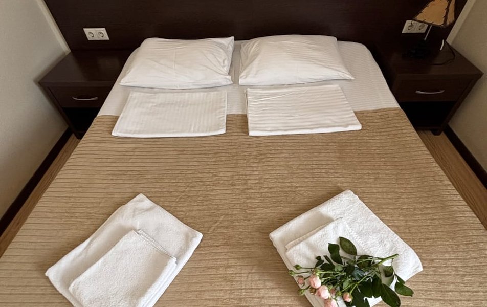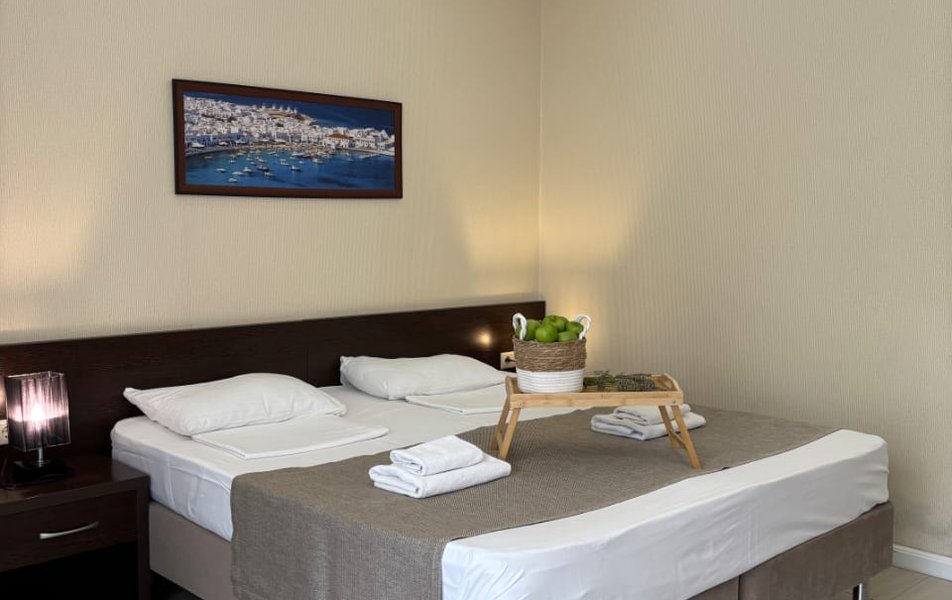 Этот вариант прекрасно подойдет как семьям, так и индивидуальным путешественникам, так как доступны различные категории: «Двухместные», «Трехместные» и «Четырехместные» номера с балконом и без. В каждом номере есть все для полноценного отдыха, включая кровати с удобными матрасами, холодильник и чайник, интернет Wi-fi, телевизор, кондиционер, вместительный шкаф и собственный санузел с душем.