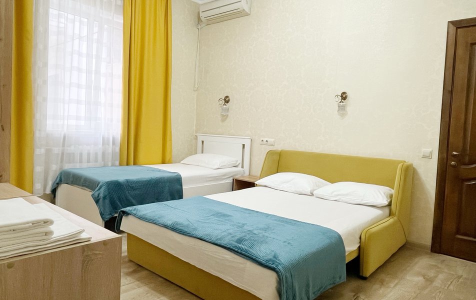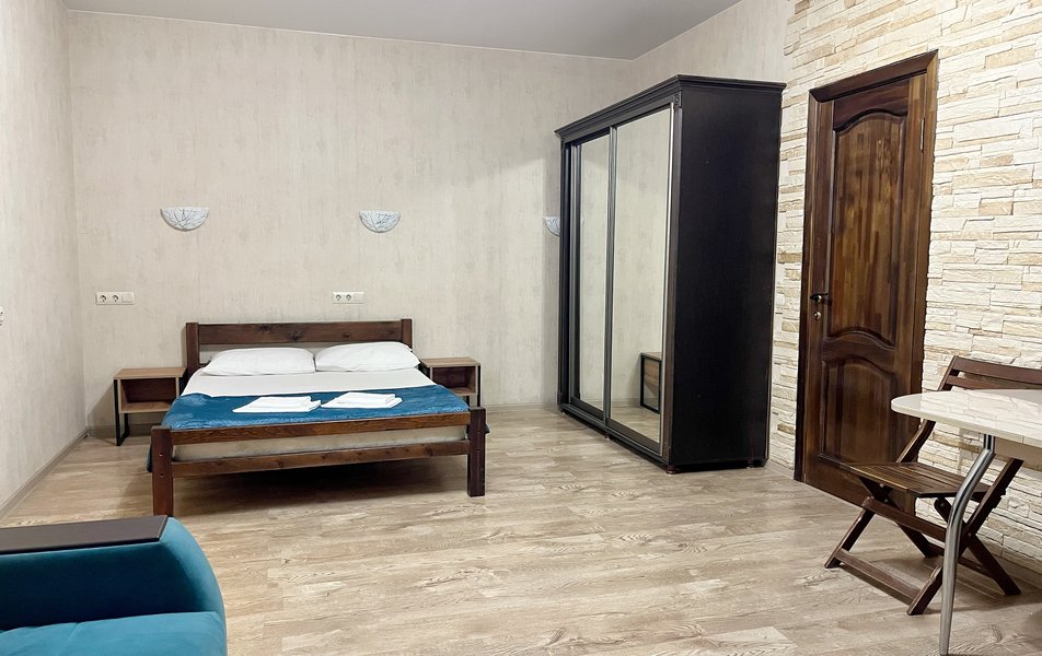 Гостевой дом разместился на Десантной улице. Жилой фонд состоит из 2-4-местных номеров различной категории комфорта. В каждом номере есть телевизор, холодильник, кондиционер, wi-fi-интернет и санузел с душем. Некоторые номера имеют собственную кухню.