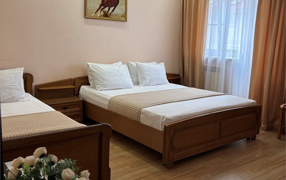 Для гостей подготовлено 17 комфортабельных номеров, каждый из которых полностью оборудован для отдыха. В распоряжении телевизор, холодильник, кондиционер, фен и чайник, а интернет Wi-Fi работает на всей территории. На первом этаже расположена столовая «Москва», работающая круглый год и предлагающая гостям блюда домашней русской и кавказской кухни по доступным ценам.