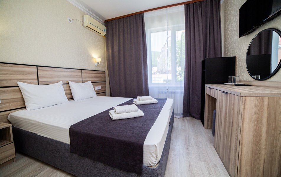 Трехэтажный корпус отеля разместился на благоустроенной территории в зеленом квартале города. Гостей ожидают 29 комфортабельных номеров с удобствами. Помимо ванной комнаты с душем, в каждом номере имеется кондиционер, телевизор и небольшой холодильник.