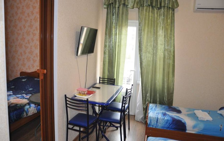 Четырехэтажный гостевой дом без лифта с небольшим двориком предлагает отдыхающим двух-, трех- и четырехместные номера категории Эконом и Стандарт. В каждом номере есть одноместные или двухместные кровати, шкаф для одежды, телевизор, в номерах Стандарт собственный санузел с душем, в Эконом – общий на блок.
