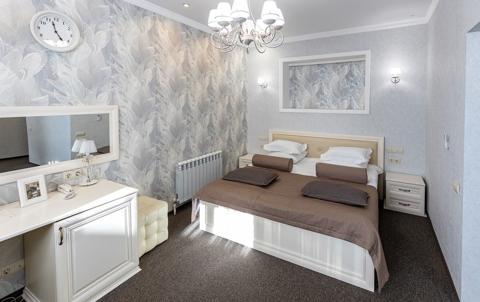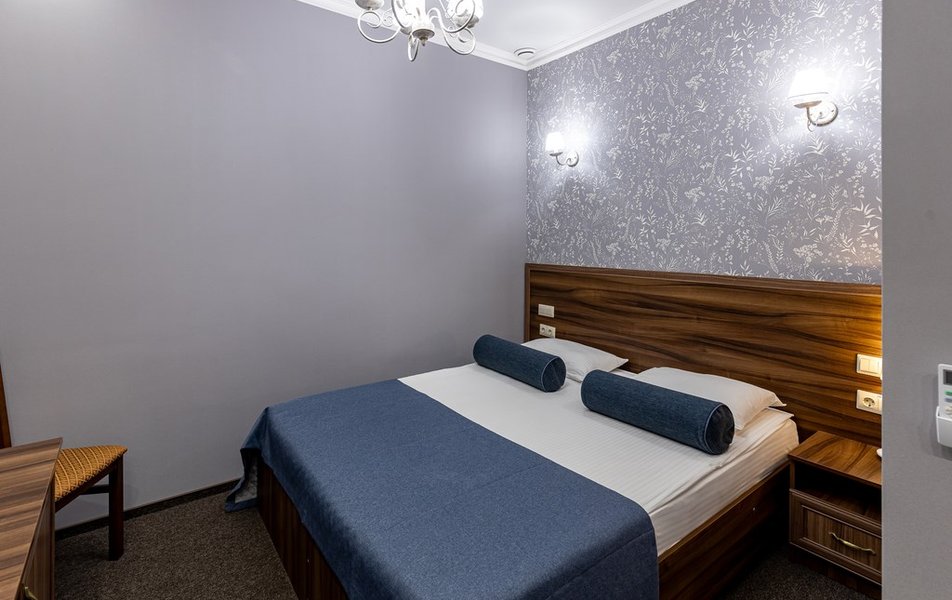 Двухэтажное здание отеля включено в красную линии застройки улицы Ворошилова. Гостям предлагаются номера категории Эконом, Стандарт, Студио и Люкс. Номера, в оформлении которых используются теплые пастельные оттенки, укомплектованы качественной современной мебелью, бытовой техникой, оборудованы ванной комнатой с душевой кабиной. В номерах категории Эконом нет окна, Люкс, напротив, оснащен большими панорамными окнами.