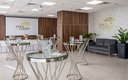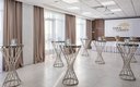 Комфортный зал площадью 69 кв.м. расположен на верхнем этаже отеля и рассчитан на 60 гостей при рассадке «театр» с мебелью светлых оттенков с возможностью установки пюпитров для письма. Помещение отлично подходит для проведения work-shop при размещении семи стеклянных фуршетных столов. При входе в зал есть лобби с мягкой зоной отдыха.