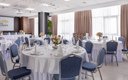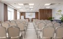 Просторный зал площадью 95 кв.м. расположен на втором этаже отеля в непосредственной близости к нескольким номерам, в которых могут удобно расположиться спикеры, либо организаторы мероприятия. В помещении есть ковровое покрытие, небольшая зона фуршет и выход на собственный балкон.