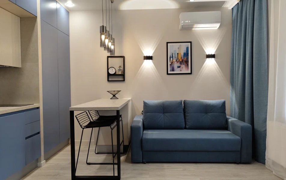 Апартаменты размещены в жилом многоэтажном доме с благоустроенной придомовой территорией и организованными входными группами. В апартаментах предусмотрены санузел, система кондиционирования, телевизор и зона для отдыха. Интерьеры выполнены в современном лаконичном стиле с нейтральной цветовой гаммой, создающей ощущение уюта и функциональности.