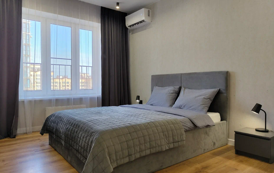 Объект размещения находится в жилом многоэтажном доме с благоустроенной придомовой территорией. Апартаменты ориентированы на комфортное проживание и оснащены системой кондиционирования, телевизором и функциональной зоной для отдыха. Интерьеры выполнены в современном лаконичном стиле с нейтральной цветовой палитрой, создающей спокойную и практичную атмосферу.