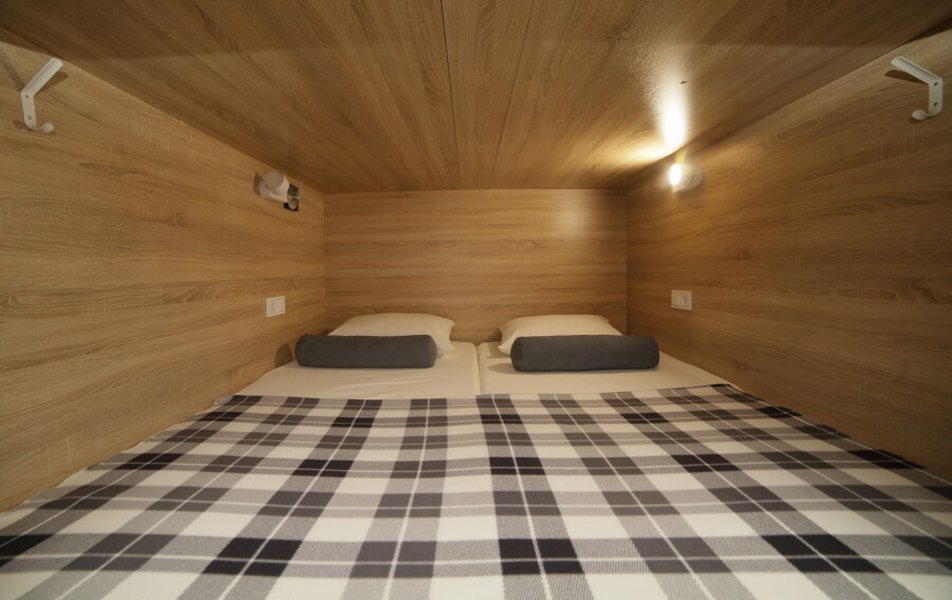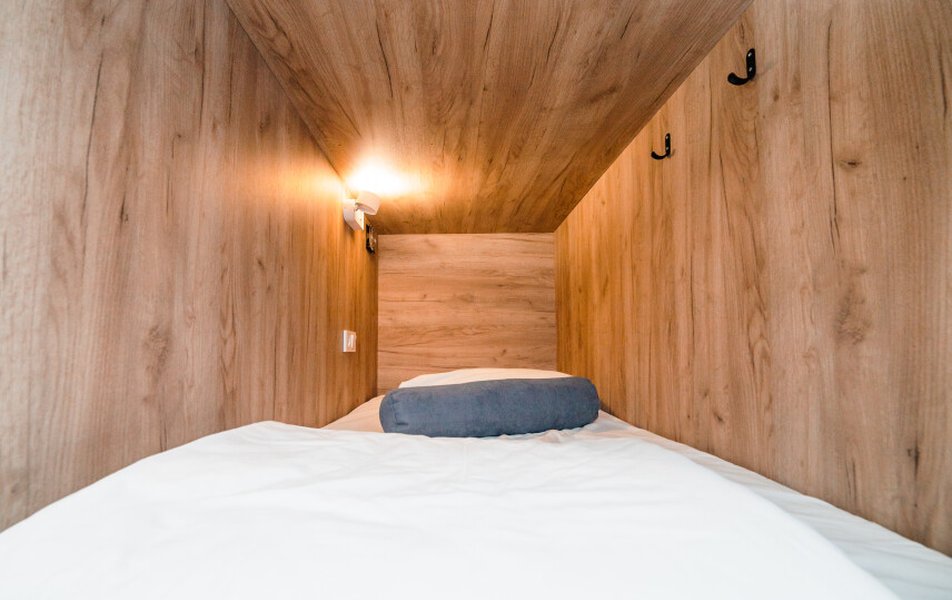 Внутри царит атмосфера современного комфорта и практичности. Каждый номер, будь то уютная капсула или просторный стандарт, оснащён всем необходимым для полноценного отдыха: здесь гостей ждёт высокоскоростной Wi-Fi, ЖК-телевизор в общей зоне отдыха, удобные розетки у кровати, индивидуальное освещение и достаточно места для вещей.