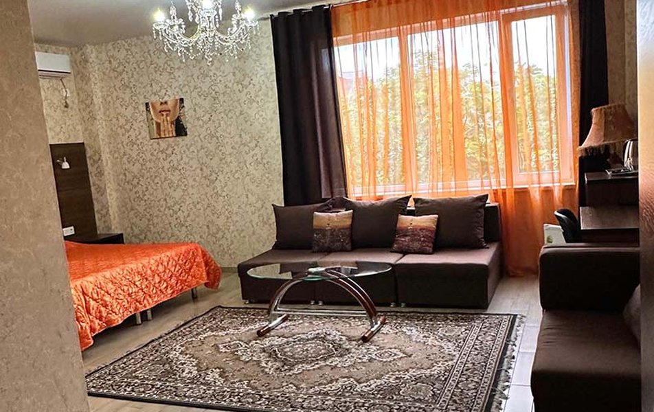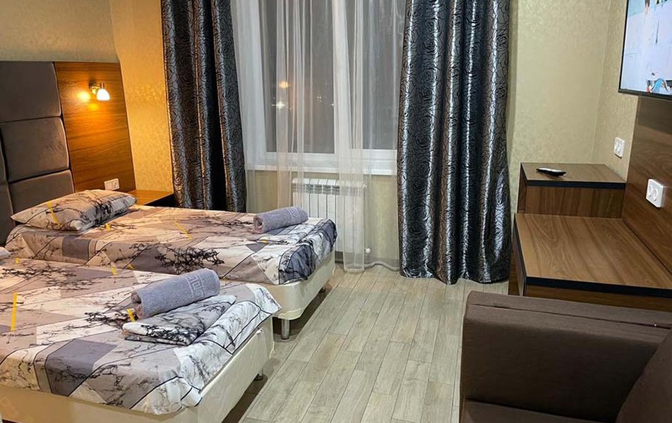 Элегантные интерьеры гостиницы, выполнены в теплых светлых тонах, а оборудование, отвечает всем современным требованиям. Номера предусматривают двухместное размещение. В числе удобств — телевизор с плоским экраном и спутниковыми каналами и бесплатным wi-fi. Каждый номер класса «Люкс», располагает собственной ванной комнатой, укомплектованной халатами, тапочками и туалетно-косметическими принадлежностями. Номера оборудованы системой отопления и кондиционирования для максимального удобства постояльцев.