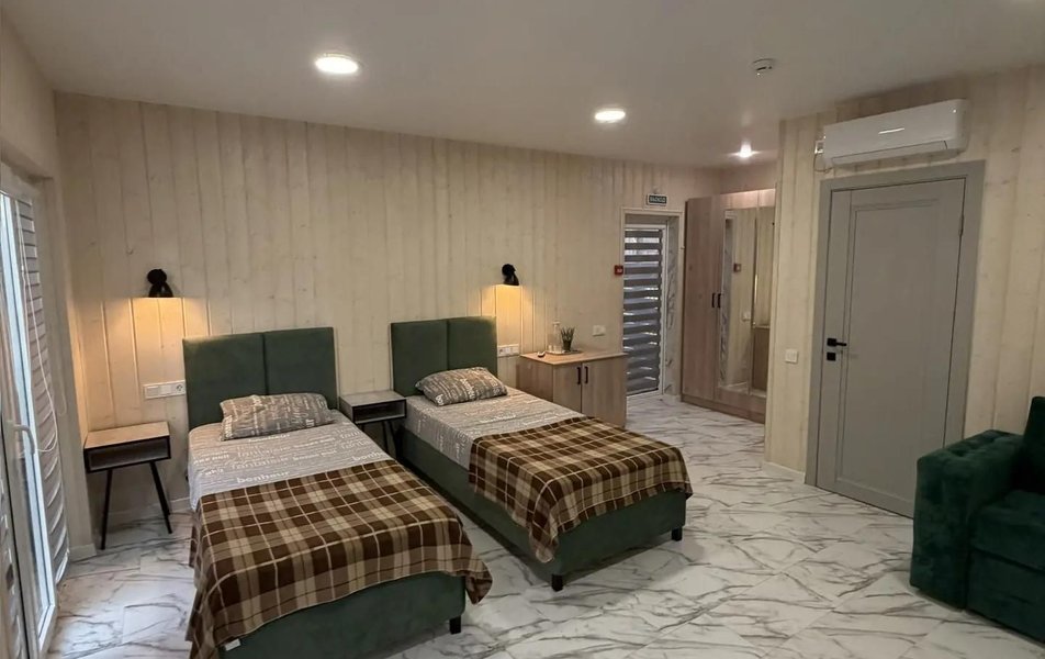 Каждый номер оснащен всем необходимым для комфортного пребывания. В зависимости от категории предусмотрены удобные спальные места, сплит-система, телевизор, санузел с душем и феном. Гостям предоставляются постельное белье, полотенца и базовые гигиенические принадлежности. Также к услугам отдыхающих — высокоскоростной беспроводной интернет.