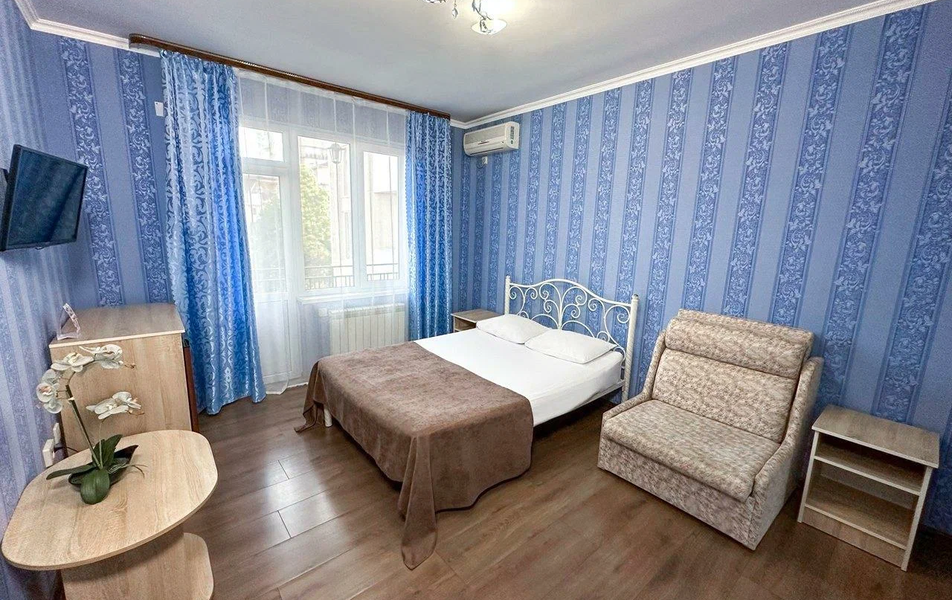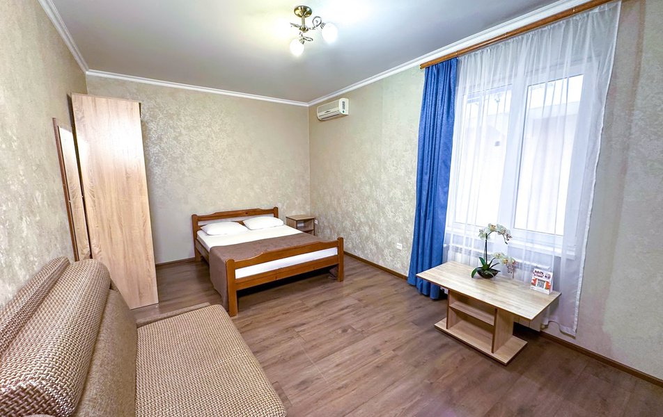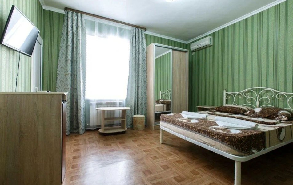 Четырехэтажный корпус гостевого дома занимает закрытую благоустроенную территорию. Гостей ожидают двух-, трех и четырехместные номера с собственным санузлом. В каждой комнате есть сплит-система, телевизор и небольшой холодильник, а в ряде номеров предусмотрены балконы.
