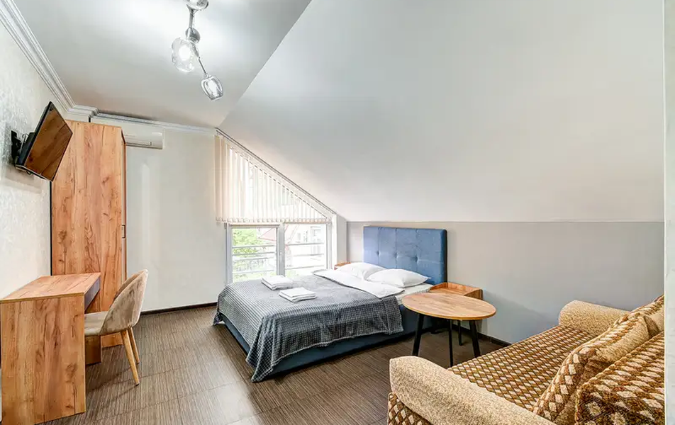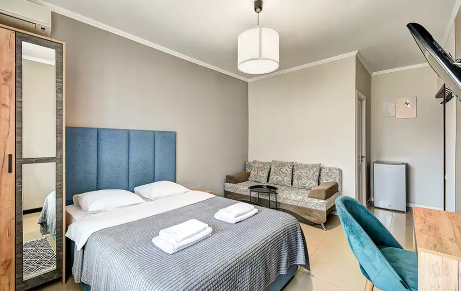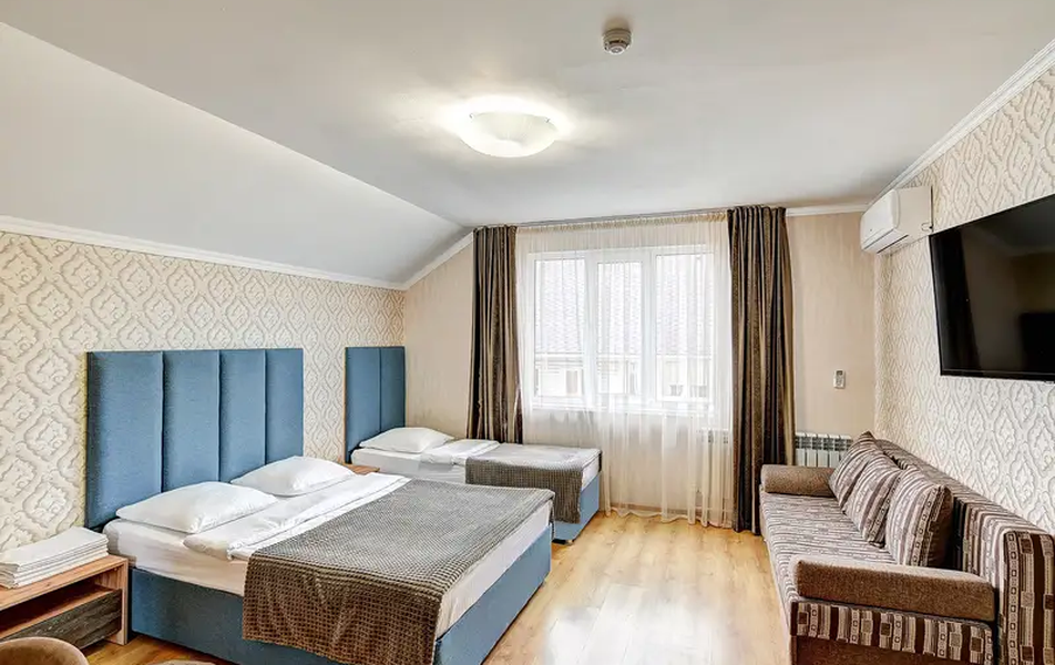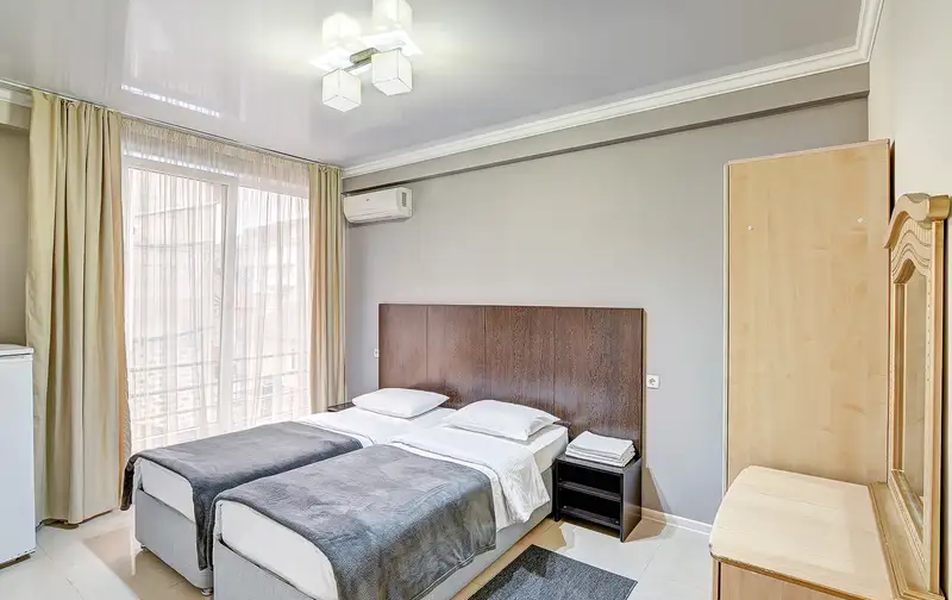 Номера в гостевом доме оформлены с заботой о комфорте, оснащены современной мебелью и необходимыми удобствами, такими как индивидуальные санузлы, телевизоры, холодильники и кондиционеры. Это создаёт приятную атмосферу для отдыха после насыщенного дня на побережье.