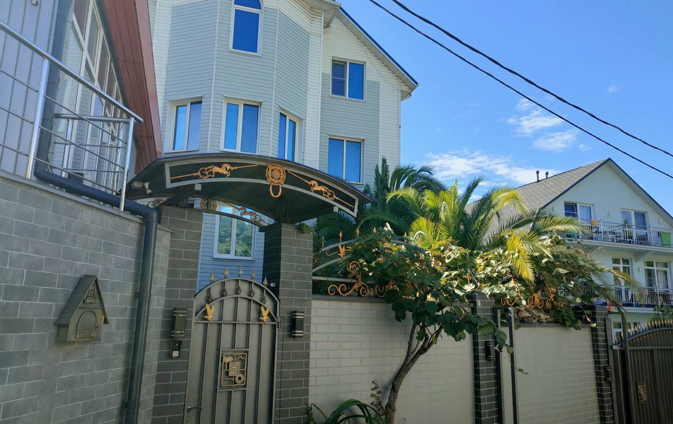 Гостевой дом занимает закрытую озелененную территорию всего в 400 метрах от побережья. Камерный жилой фонд состоит из 14 номеров с удобствами. В каждом номере все предусмотрено для комфортного пребывания: есть санузел c душевой кабиной, фен, кондиционер, холодильник, телевизор. На каждом этаже оборудована гладильная зона с доской и утюгом, а на первом установлена стиральная машина для самостоятельного пользования.