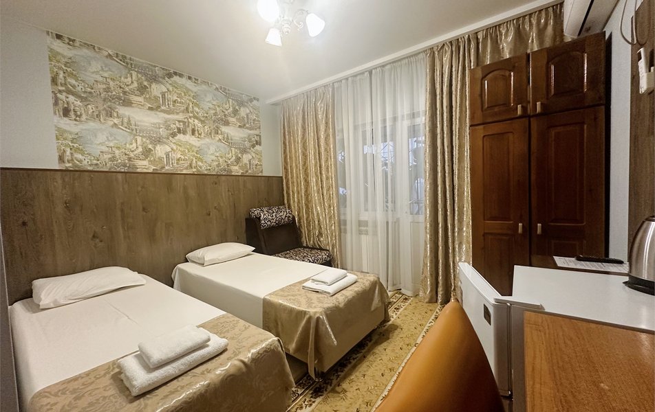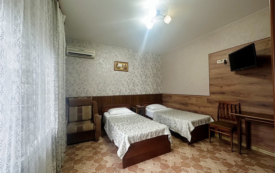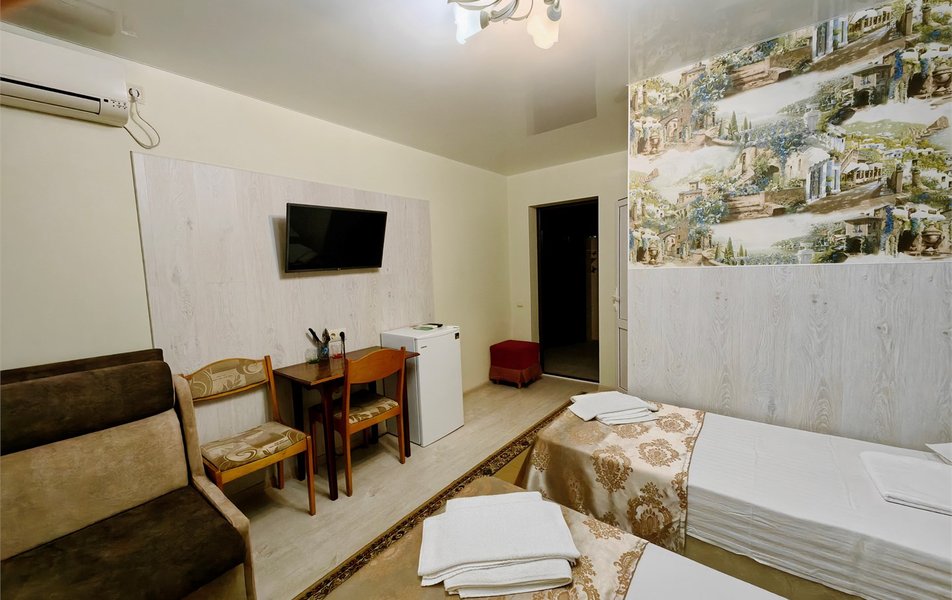 Гостевой дом занимает закрытую благоустроенную территорию с зеленым внутренним двориком. Гостей ожидают комфортабельные номера, некоторые из них оснащены мини-кухней. Во всех комнатах есть индивидуальный санузел, кондиционер и телевизор.