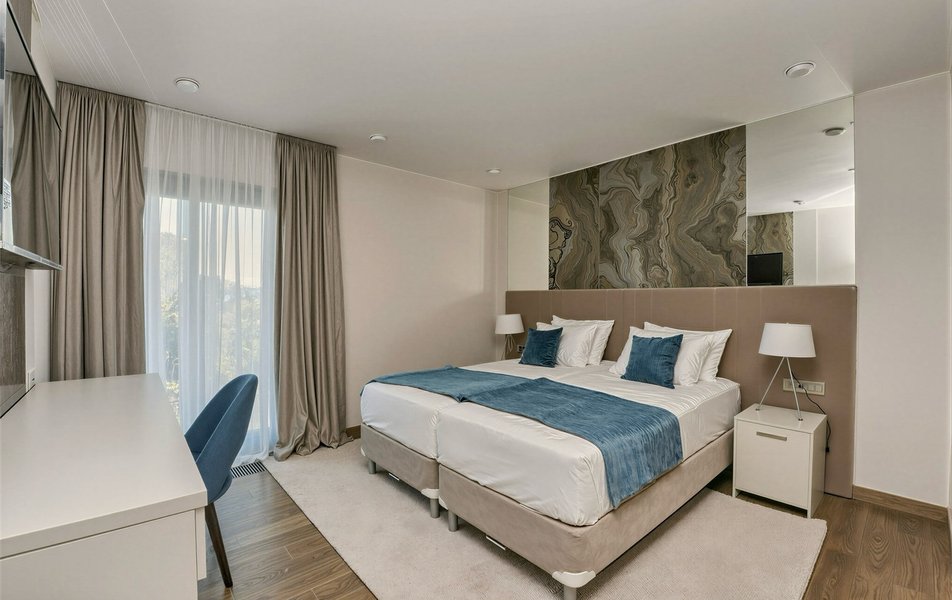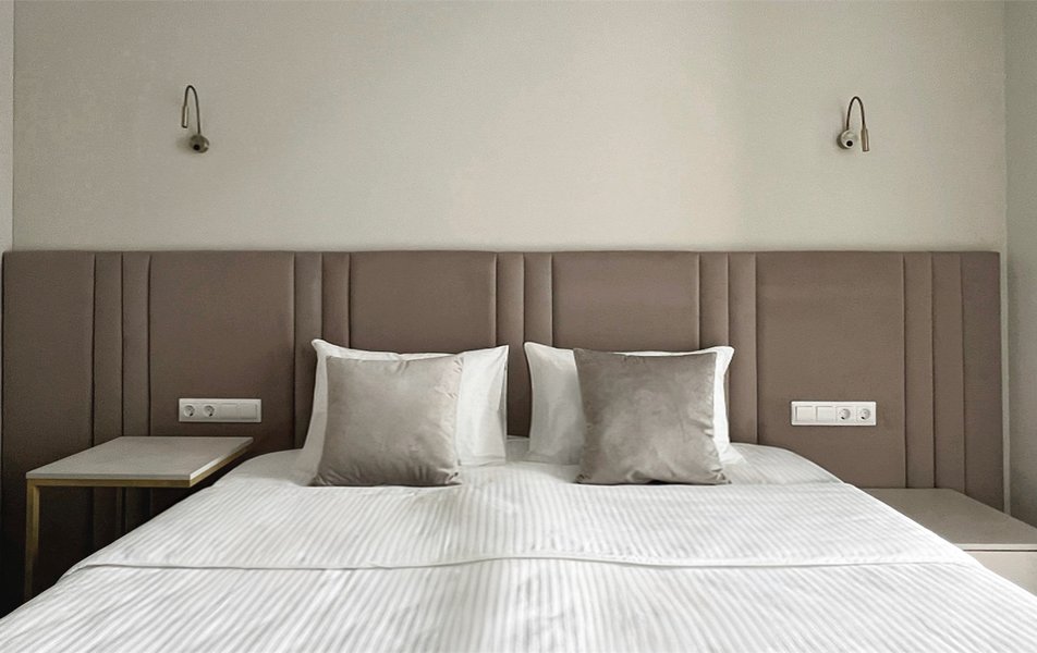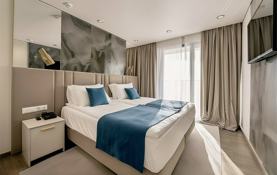 Номерной фонд представлен разнообразными вариантами: от уютных стандартных номеров без балкона до двухместных с живописным балконом и просторных двухкомнатных номеров, рассчитанных на размещение семьи из четырех человек. Каждый из них продуман до мелочей, чтобы гости чувствовали себя желанными и окруженными заботой.