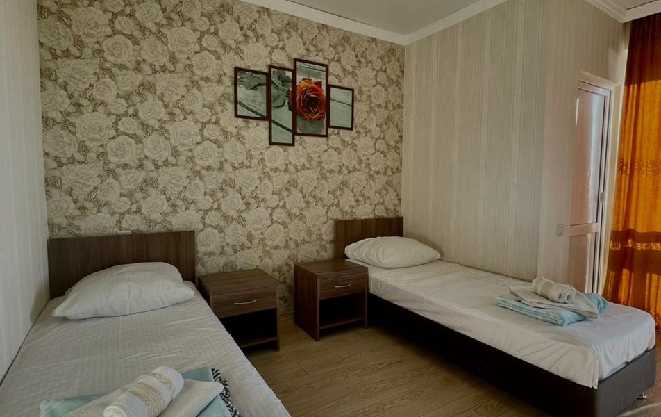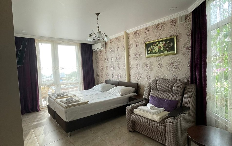 Попадая на территорию, гость словно оказывается в оазисе южного уюта: ухоженный дворик с экзотическими растениями, нежный плеск фонтана, уютная беседка для тихих разговоров, детская площадка, где малыши могут резвиться под присмотром, и открытый бассейн с подогревом, откуда открывается захватывающий вид на бескрайнее море. А ещё на территории есть большой мандариновый сад — осенью он наполняется золотыми плодами и пряным цитрусовым ароматом.
