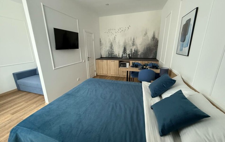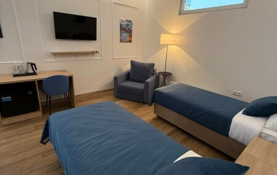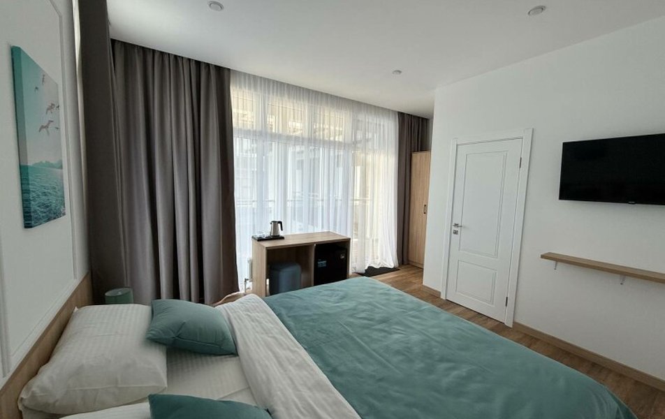 Открытие гостевого дома состоялось в 2025 году. 11 номеров комфорт-класса выполнены в современном европейском стиле с новой мебелью и техникой. В каждом номере есть чайник, холодильник, ЖК телевизор, кондиционер, Wi-Fi, шторы и портьеры блэкаут на окнах, новое постельное бельё из хлопка, санузел с душевой зоной, банные полотенца, а также принадлежности для личной гигиены (шампунь, мыло). В отдельном помещении гостевого дома расположена общая кухня с обеденной зоной.