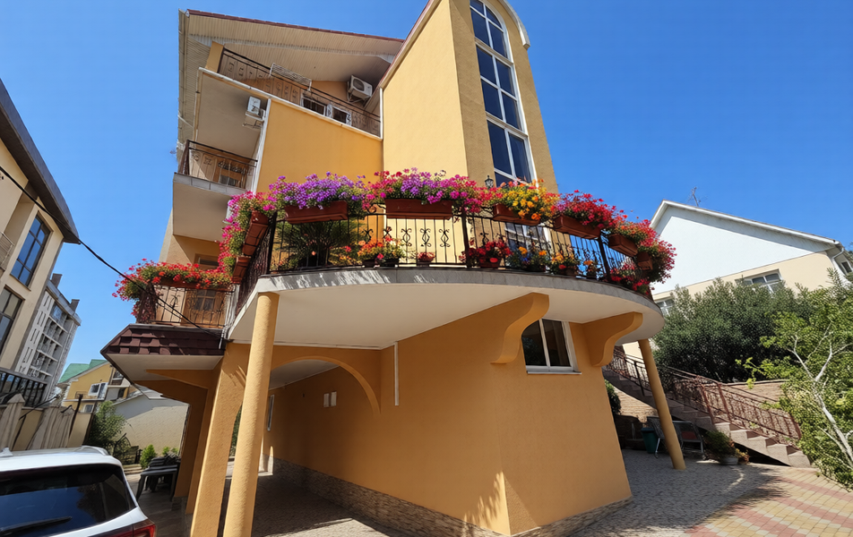 Берег Черного моря и галечный пляж находится всего в нескольких шагах от гостиницы.