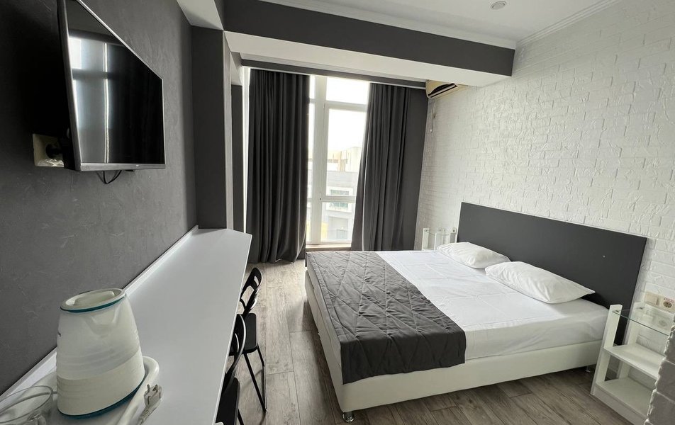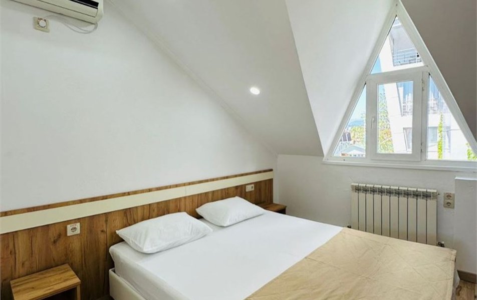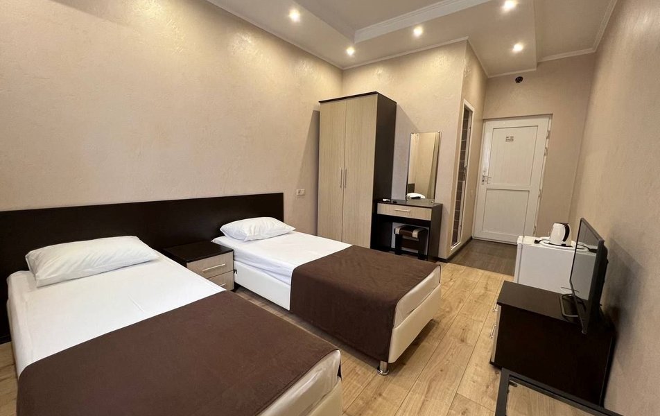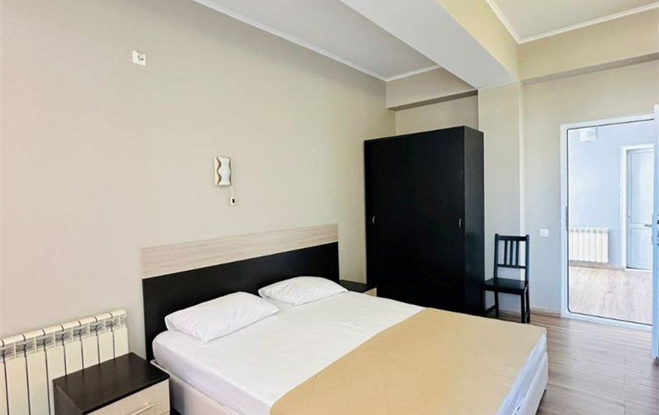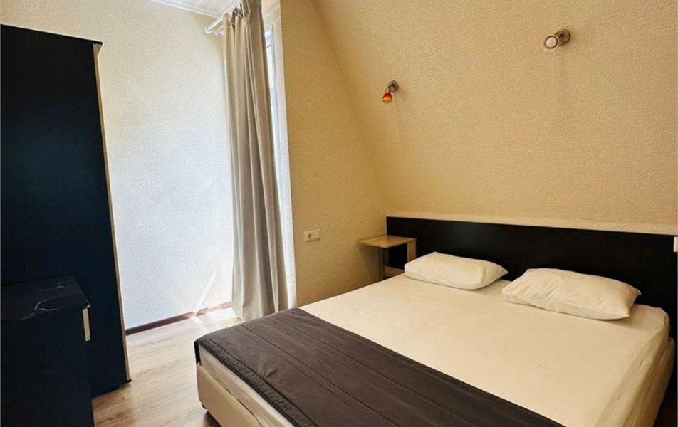 Шестиэтажный корпус гостевого дома разместился всего в 200 метрах от моря. К услугам гостей номера разных категорий комфорта — есть как небольшие стандартные номера, так и Апартаменты с кухней. В каждом номере есть собственный санузел, электрочайник, плазменный телевизор, установлен кондиционер, в ряде комнат имеются балконы или террасы. Лифта нет.