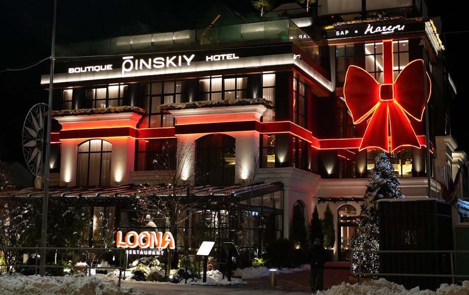 Отель «Pinskiy» разместился в высокогорном поселке Эсто-Садок. В шаговой доступности – кафе, столовые, рестораны, крупный развлекательный центр с аквапарком и кинотеатром «Горки Молл», концертный зал Red Arena. В 10 минутах езды – знаменитая Роза Хутор и канатная дорога «Олимпия», вниз к побережью можно спуститься за 40–50 минут, в 36 километрах – международный аэропорт.