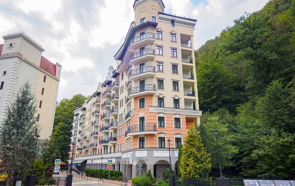 Поездом до ж/д вокзала Роза Хутор, далее на автобусе №163,105,105с,105э,535,535э до остановки «Роза Хутор», затем пройти 264 м. до апартаментов