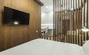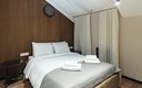 В номерах стильный сдержанный интерьер, выдержанный в приятной цветовой гамме с использованием благородных шоколадных оттенков. Комнаты оснащены санузлом с душем, сплит-системой, есть телевизор-ЖК и мини-кухня с необходимой бытовой техникой.
