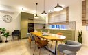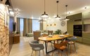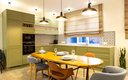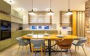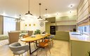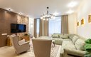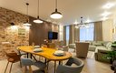Общая зона включает в себя светлую гостиную и столовую, где большой обеденный стол и мягкая мебель располагают к долгим вечерним разговорам. Кухня оснащена всем необходимым для полноценного приготовления пищи: от вместительного холодильника и плиты с духовым шкафом до посудомоечной машины, кофемашины и микроволновой печи, а беспроводной Wi-Fi позволяет оставаться на связи в любой точке апартаментов.