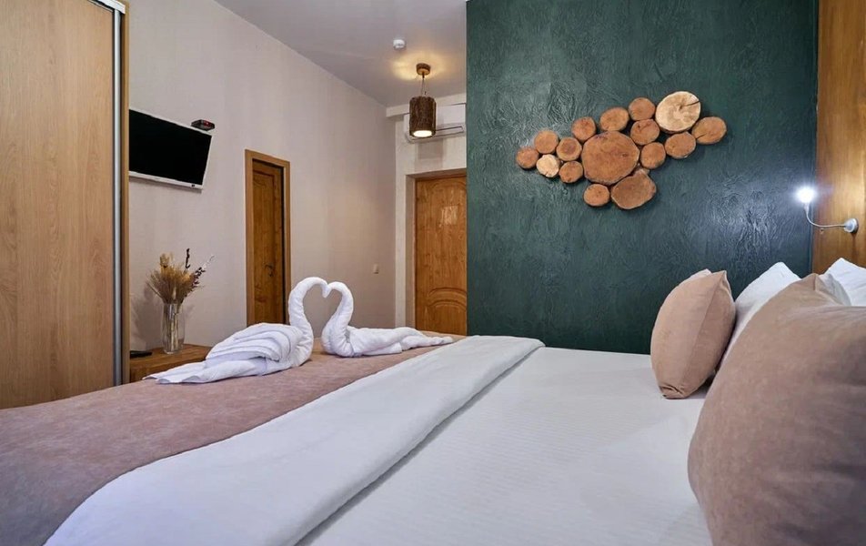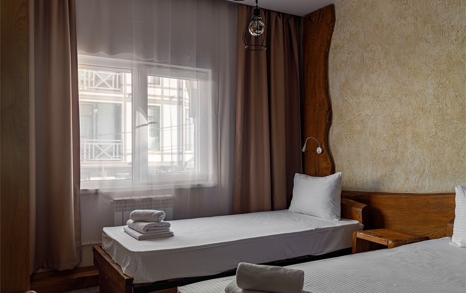 Номера гостевого дома оснащены необходимыми бытовыми и техническими приборами, бесплатным wi-fi. Из их окон открывается прекрасный вид на роскошную панораму гор и вековых девственных лесов, некоторых достопримечательностей посёлка. В их числе и знаменитый Олимпийский трамплин «Русские горки». Верхние номера имеют выход на резные балконы и террасы. Ещё одним оригинальным свойством гостевого дома считается наличие 2-хуровневых номеров.