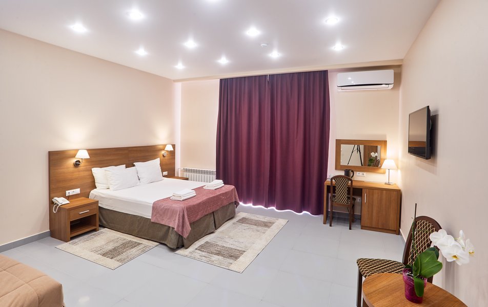 Роскошное здание отеля вмешает одновременно более 130 человек. Его комфортабельные и светлые номера с высокими панорамными окнами обставлены первоклассной мебелью. Номера полностью оборудованы необходимыми бытовыми приборами, имеют отдельные ванные. Балконы и летние веранды, с которых открываются живописные виды, – чудесное дополнение для любителей морских пейзажей. «Арт-отель» подходит для любого типа постояльцев – одиночных, пар, семей и дружеских компаний.