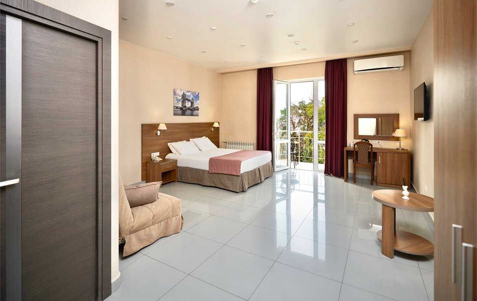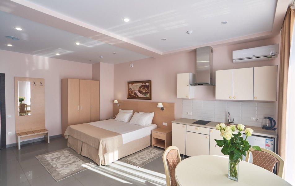 Отель вмещает более 130 человек и предлагает светлые номера с панорамными окнами и качественной мебелью. В каждом номере есть все необходимые удобства, включая отдельные ванные комнаты. Балконы и веранды с живописным видом на море делают «Арт-отель» идеальным местом для отдыха как для одиночных путешественников, так и для семей или дружеских компаний.