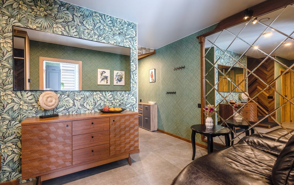 Территория дома предлагает место для хранения спортивного инвентаря, а также имеет приватное патио с зоной для барбекю и уличной мебелью, что создаст атмосферу уюта и позволяет организовать времяпрепровождение на открытом воздухе. Дом предназначен для комфортного проживания шести человек, и при необходимости есть возможность разместить двух дополнительных гостей на раскладном диване в гостиной.