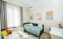 На втором этаже — три спальни и санузел. Во второй спальне стоит двуспальная кровать 180×200 и smart‑телевизор, есть выход на балкон с видом на горы. Третья спальня с кроватью 160×200 и smart‑телевизором также имеет балкон с горным пейзажем. Четвёртая спальня детская — с двумя односпальными кроватями и письменным столом.