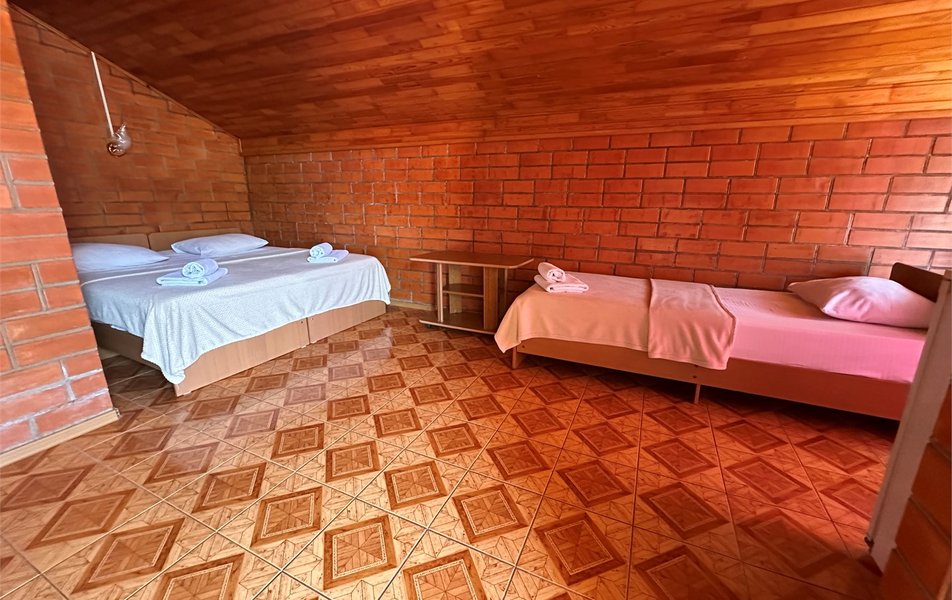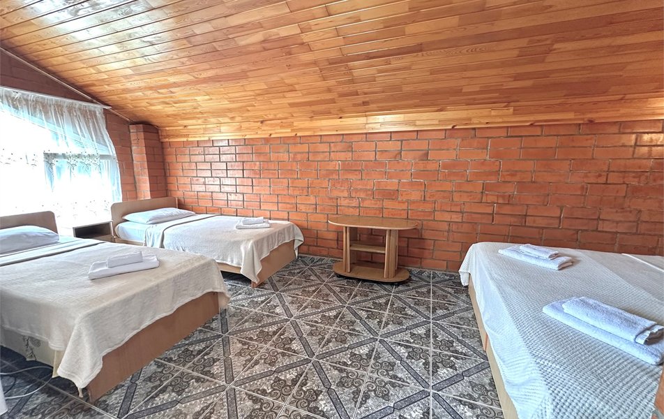 Гостевой дом состоит из основного корпуса и трех коттеджей. На территории цветущий сад, фонтан, киви, мандарины, банановая пальма и другие экзотические растения. Номера разной категории от эконом до семейных 2-х комнатных.