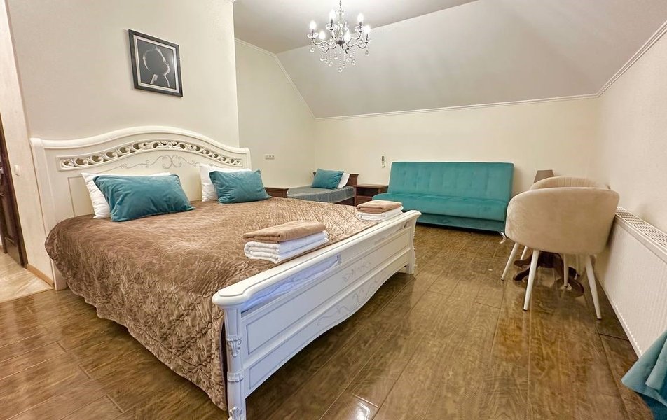 В инфраструктуру гостевого дома, расположенного на закрытой территорией на улице Тормахова, входят два корпуса с номерами различных категорий. Среди удобств – необходимая мебель, включая сейф, телевизор, холодильник, кондиционер, фен и санузел с душем.
