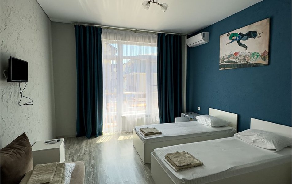 В гостевом доме представлены 3 категории номеров, каждый из которых оснащен собственной ванной комнатой. В распоряжении гостей — кондиционер, телевизор, фен, а также свежие полотенца и гигиенические принадлежности. Беспроводной интернет работает как в номерах, так и на всей территории. Оборудована общая кухня, где есть всё необходимое для приготовления любимых блюд. Также на территории обустроена мангальная зона — отличное место для дружеских вечеров и ароматного барбекю на свежем воздухе. При необходимости можно воспользоваться услугами прачечной. Для маленьких гостей предусмотрен батут. По предварительному согласованию возможно размещение с домашними питомцами.