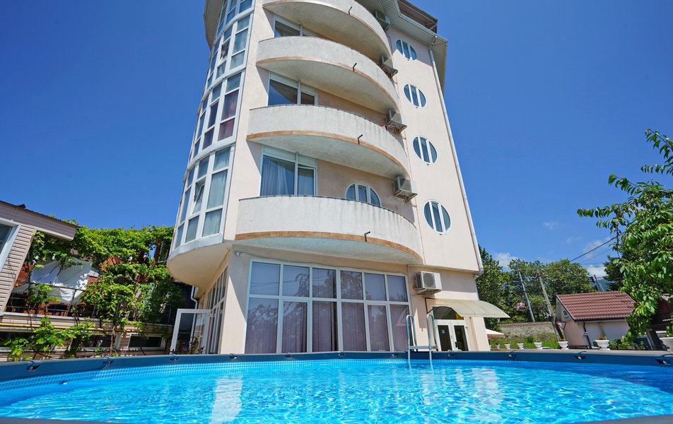 Галечный пляж "Багратион", отмеченный премией "Голубой Флаг", расположен всего в 5 минутах пешком, а по пути к морю можно найти столовые, торговые точки со сладостями и сувенирные лавки, которые сделают отдых еще более приятным.