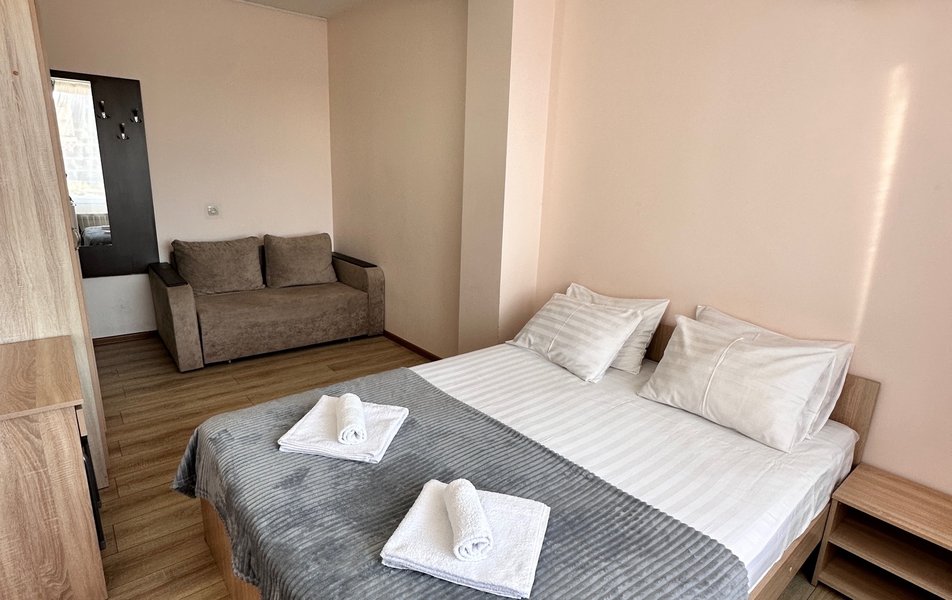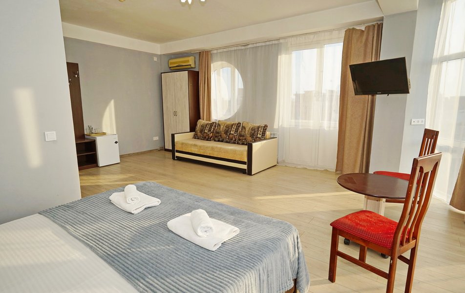 В гостевом доме доступны различные номера: от комфортных 2-, 3- и 4-местных до двухкомнатных семейных. Все номера оснащены необходимыми удобствами: кроватями, санузлами, телевизорами, холодильниками, кондиционерами и балконами, что обеспечивает максимальный комфорт. Постельное белье и полотенца включены в проживание.