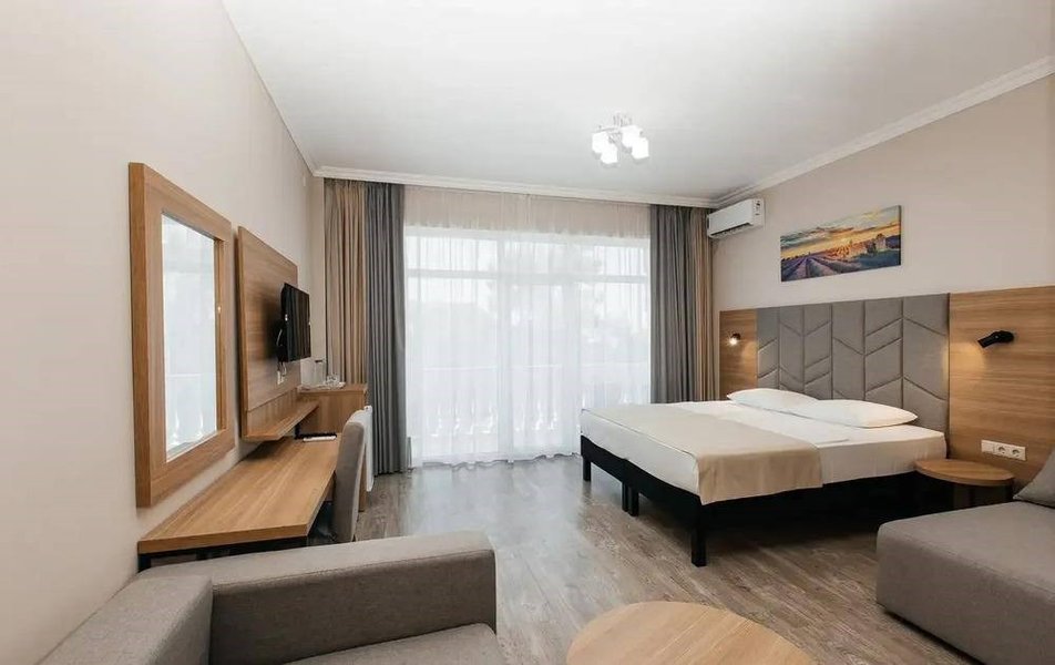 На территории гостевого дома находится бассейн с комфортной зоной отдыха, оборудованной шезлонгами, где можно насладиться солнечными днями. Гостям предлагается четырехразовое питание по системе «все включено» с разнообразным меню «шведский стол» и широким выбором алкогольных и безалкогольных напитков. Для активного досуга доступны тренажерный зал, анимационные программы и вечерние шоу. Особое внимание уделено юным гостям: для них предусмотрен детский бассейн, мини-аквапарк с горками и игровая площадка. До пляжа курсирует трансфер по расписанию.