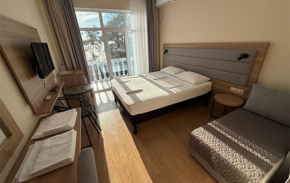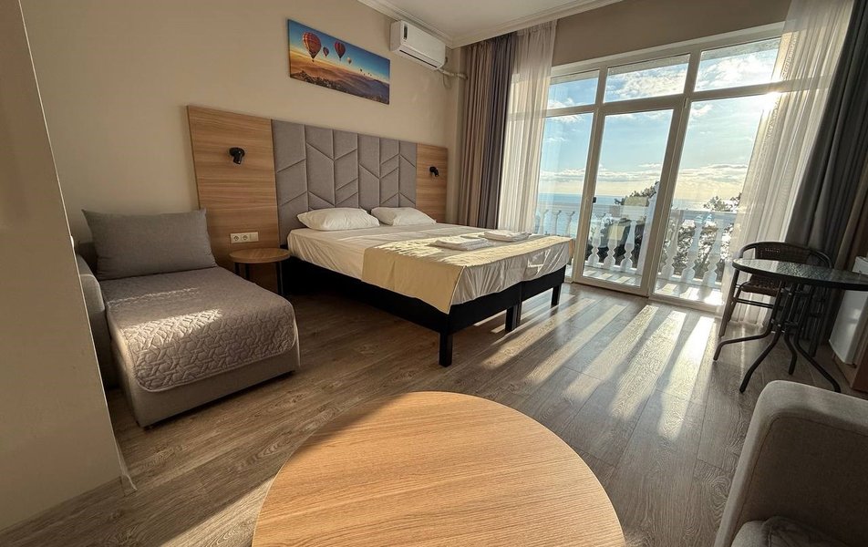 Гостевой дом располагает современными номерами с новым стильным интерьером и индивидуальными балконами, где каждый гость найдет для себя все необходимое. В каждом номере установлены кондиционер, телевизор, холодильник, а также имеется собственный санузел с душем, фен. Для максимального комфорта предусмотрены удобные кровати и достаточно места для хранения вещей. Доступен беспроводной интернет Wi-Fi.