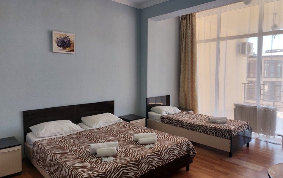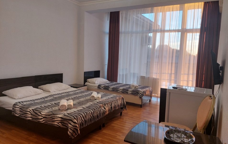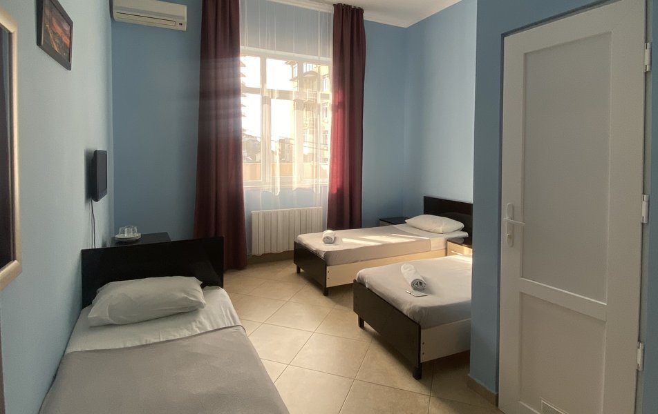 Пять этажей дома вмещают тридцать семь светлых номеров. В каждом из них царит атмосфера чистоты и покоя, есть все для комфортного проживания: телевизор, кондиционер, собственный санузел и набор посуды. Небольшой холодильник, личный или расположенный на этаже, поможет сохранить свежесть фруктов и прохладу напитков.