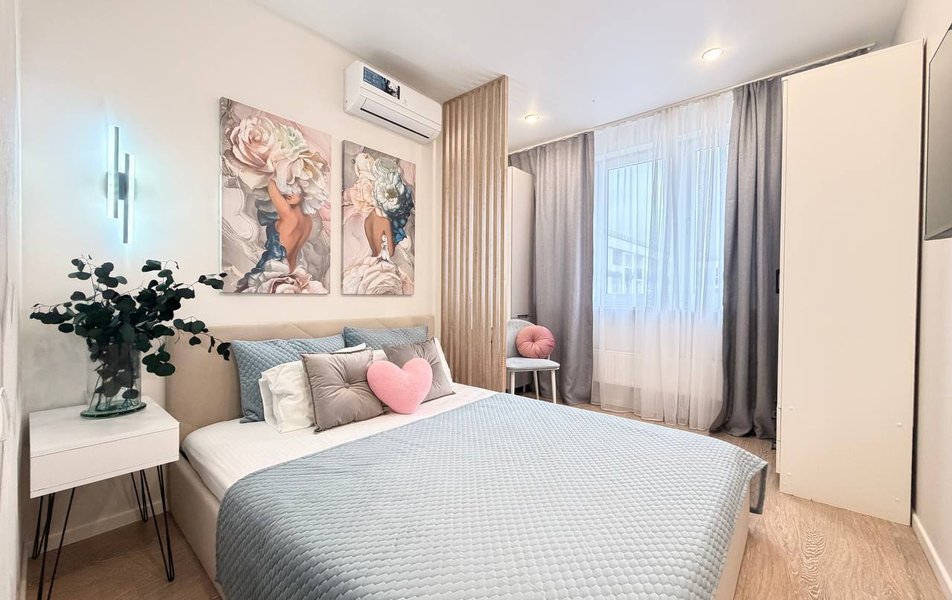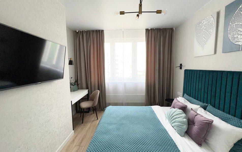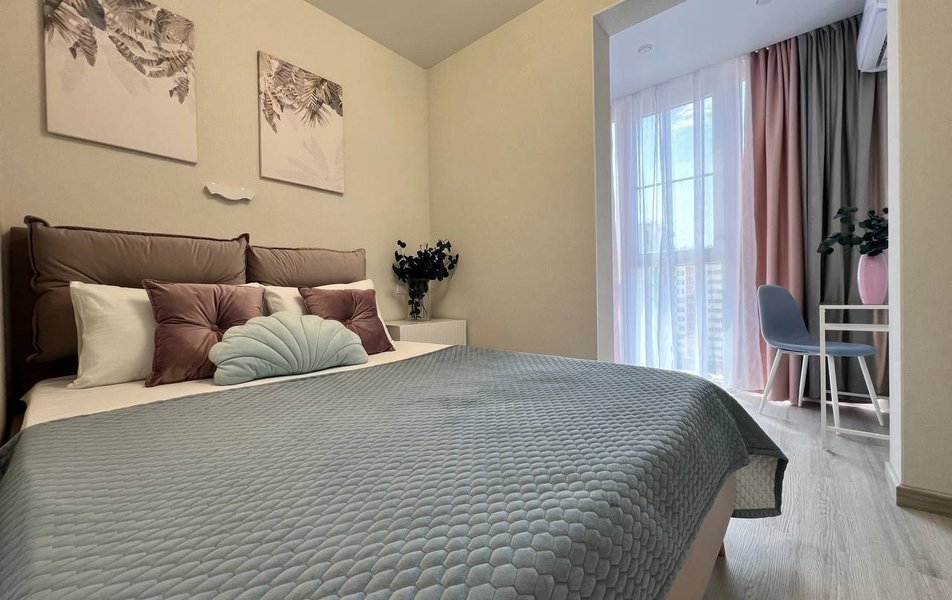 Апартаменты разместились на закрытой большой территории современного жилого комплекса. В распоряжении гостей – стильные светлые апартаменты. Все апартаменты оснащены полностью оборудованной кухней: есть индукционная плита, холодильник, электрочайник, микроволновая печь. В комнатах – удобная мебель, плазменный телевизор со Smart-TV, балкон, установлен кондиционер. В индивидуальном санузле – ванная или душевая, есть фен и стиральная машина. Среди удобств – беспроводной интернет и круглосуточная стойка размещения.