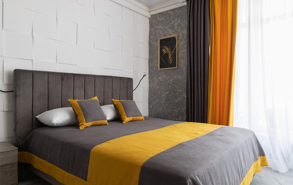 | Мебель | вешалка зеркало кресло-кровать кровати односпальные /одна двуспальная кровать прикроватные тумбочки стол стулья шкаф |