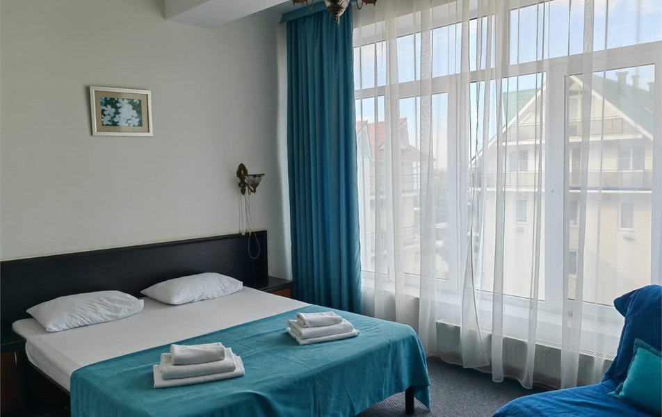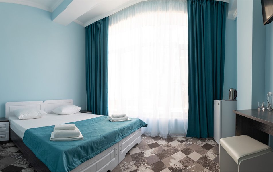 Шестиэтажный отель возвышается в 50 метрах от Черноморского побережья. Жилой фонд, рассчитанный на 120 человек, предлагает отдыхающим номера разной категории комфорта. В каждом имеется удобный мебельный гарнитур, собственный санузел, кондиционер, телевизор и холодильник. Из комнат открываются виды на море или город.