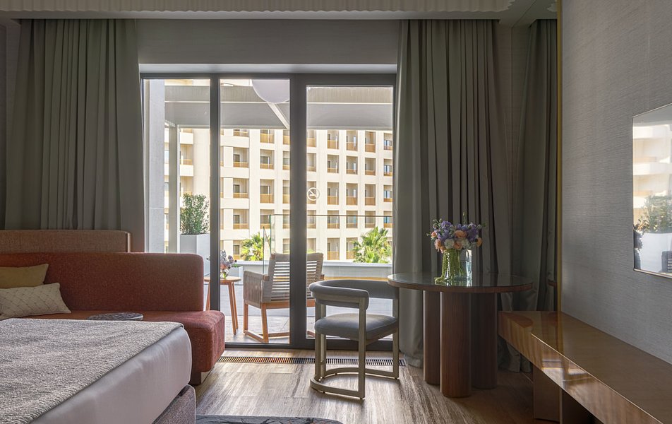 Особенностью номера является наличие меблированной террасы с видом на море площадью 30 м2 и системы.