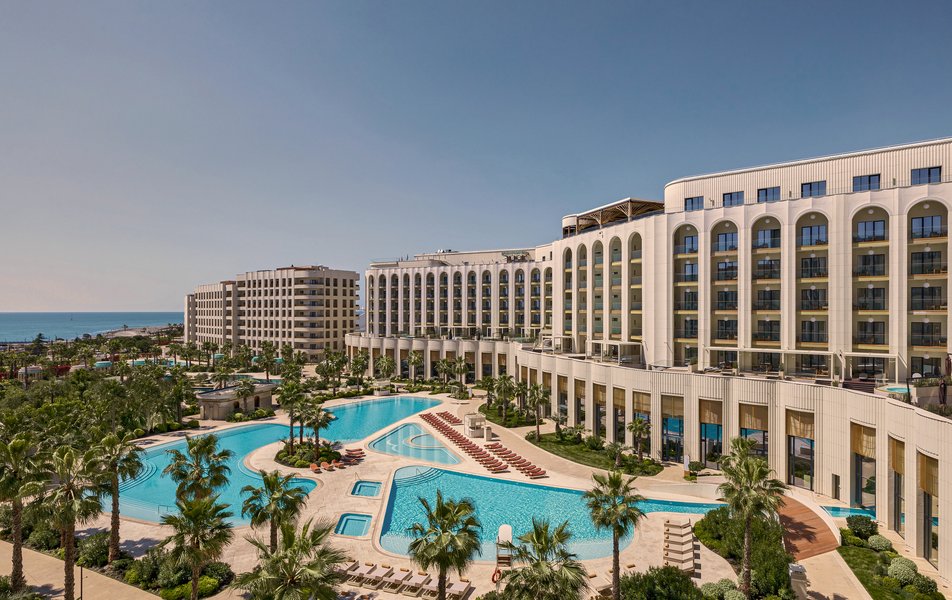 | Бассейны | крытый вода морская: с двумя джакузи и выплывом в открытый комплекс во внутреннем дворе отеля, 26 – 29°С, глубина: 1,2 м вода пресная: оздоровительный бассейн, 26 – 29°С, глубина: 1,2 – 1,8 м детское отделение в бассейне для взрослых пользование бассейном входит в стоимость открытый вода морская: в т.ч. семейный, медленная круговая река, бассейн 18+, инфинити-бассейн в VIP на 8-ом этаже отеля детское отделение в бассейне для взрослых пользование бассейном входит в стоимость детский бассейн: 30 – 32°С, глубина: 0,7 м вода пресная |